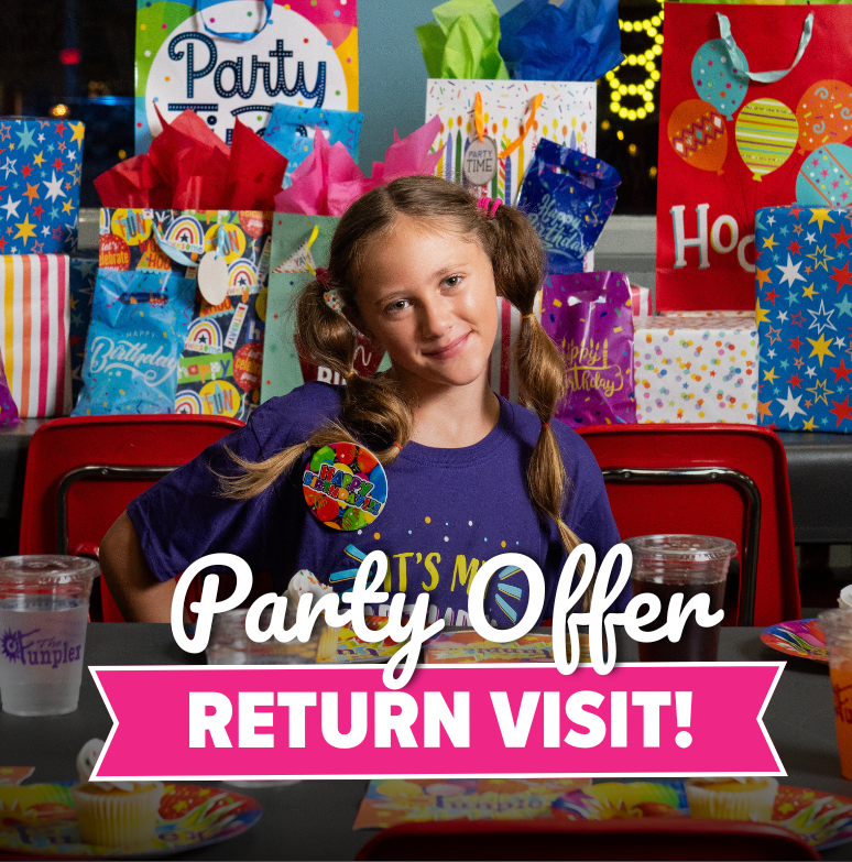 Celebrate your child’s big day at The Funplex and enjoy a little extra fun on us! When you host a party with us, the birthday child will receive a FREE return ticket to come back and play again. It’s our way of keeping the celebration going, even after the party ends!