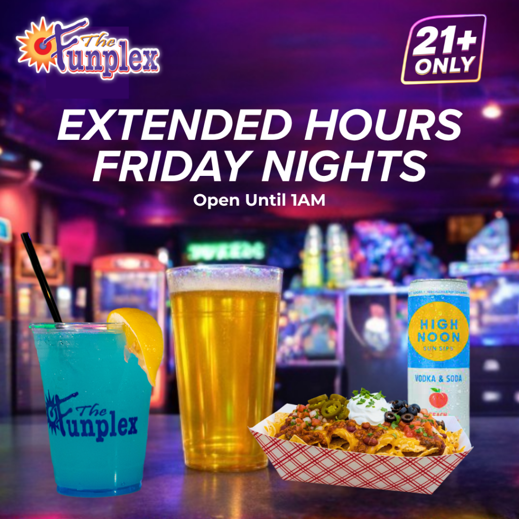 Starting April 3, enjoy extended park hours every Friday from 10PM–1AM for guests 21+. Spend the night DJ music, drinks, games, and late-night bites all in one place. Whether you’re grabbing a drink, hitting the arcade, or hanging with friends, it’s an easy way to make the most of your Friday night.