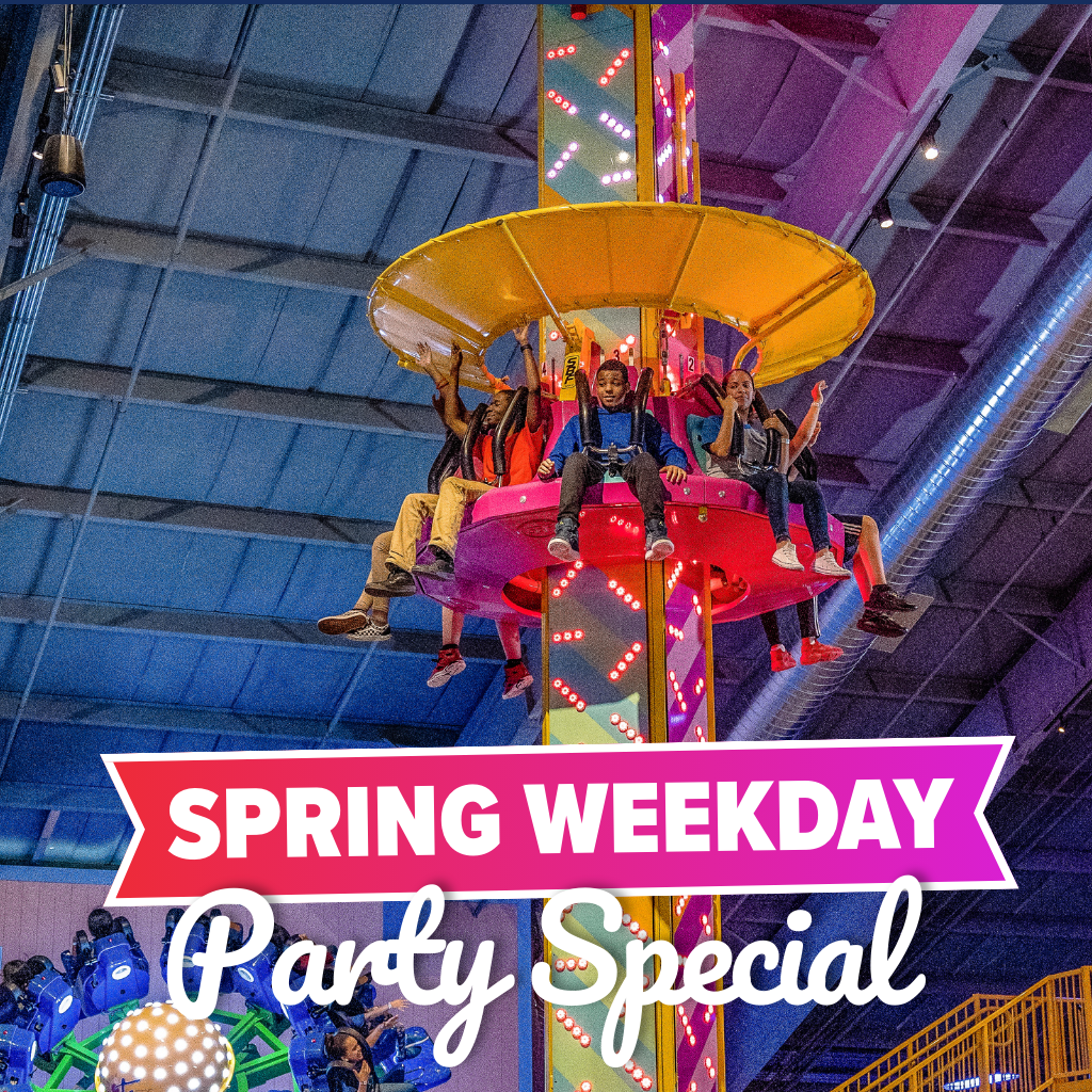 Celebrate during Spring Break and get an extra reward! Book a weekday birthday party between March 27th and April 12th and the birthday child will receive a FREE Summer Season Pass. This limited-time offer is valid for weekday Spring Break parties only and excludes the Pick 3 Package.