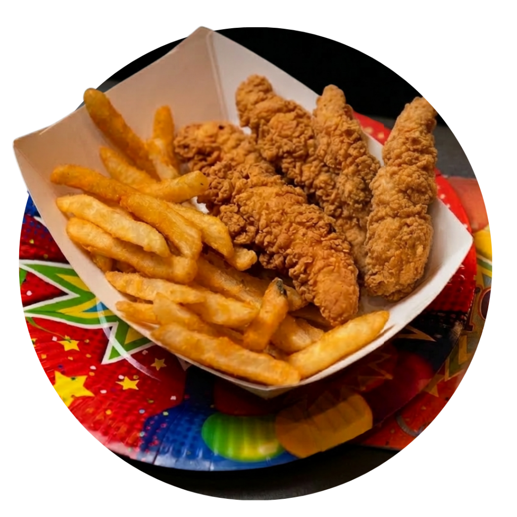 Upgrade your party meal from pizza to 3 chicken tenders and fries per guest!