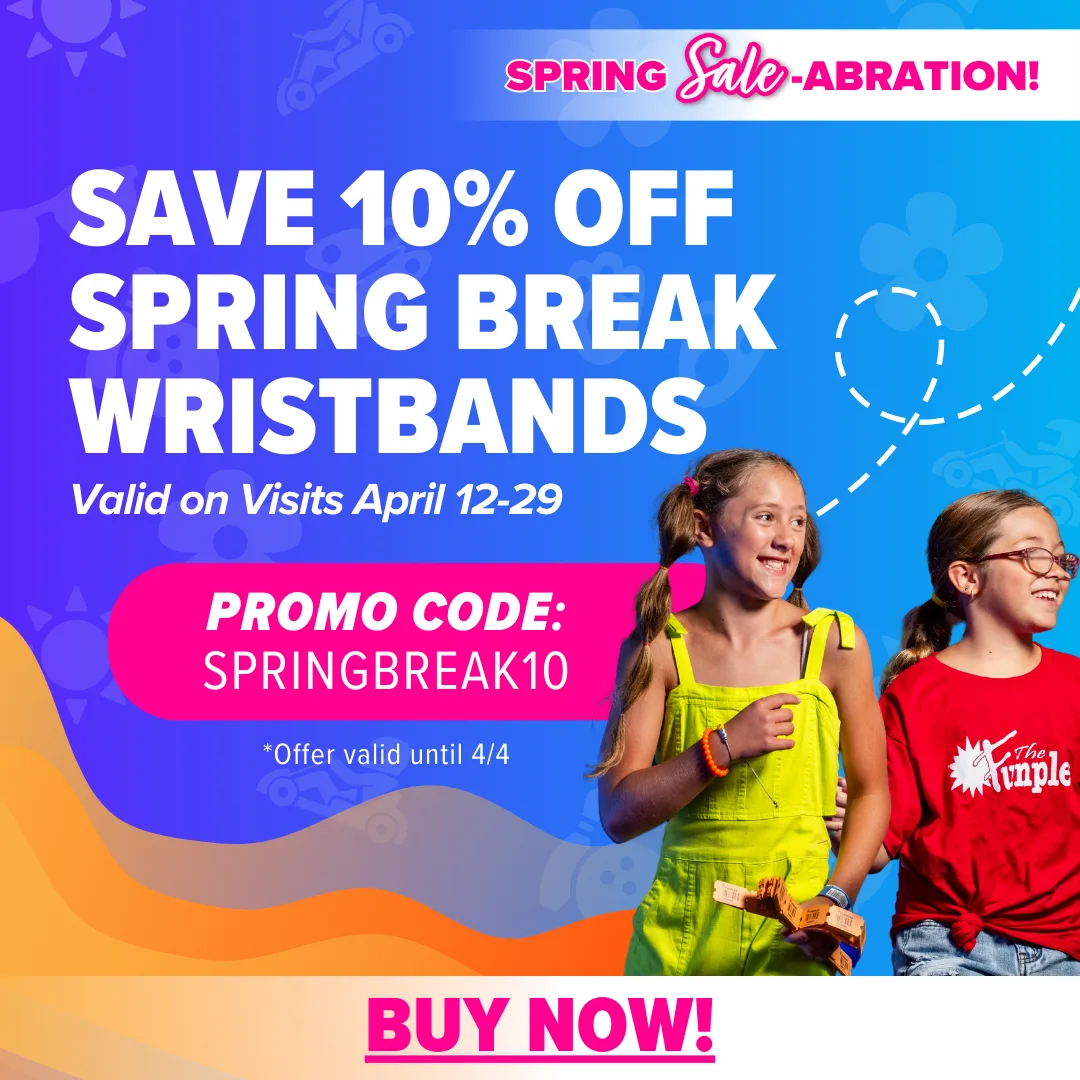 These amazing rates are only available when you book in person. So stop by our front desk when you visit The Funplex over Spring Break and lock in your summer plans so you can start dreaming of those sunny summer days, the cool splash of water, and a poolside cocktail in hand.